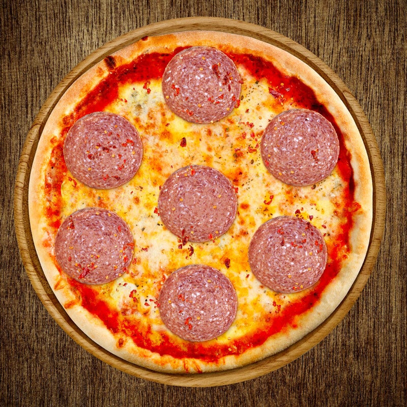 Tomatensauce, Mozzarella, scharfer Salami, Oregano